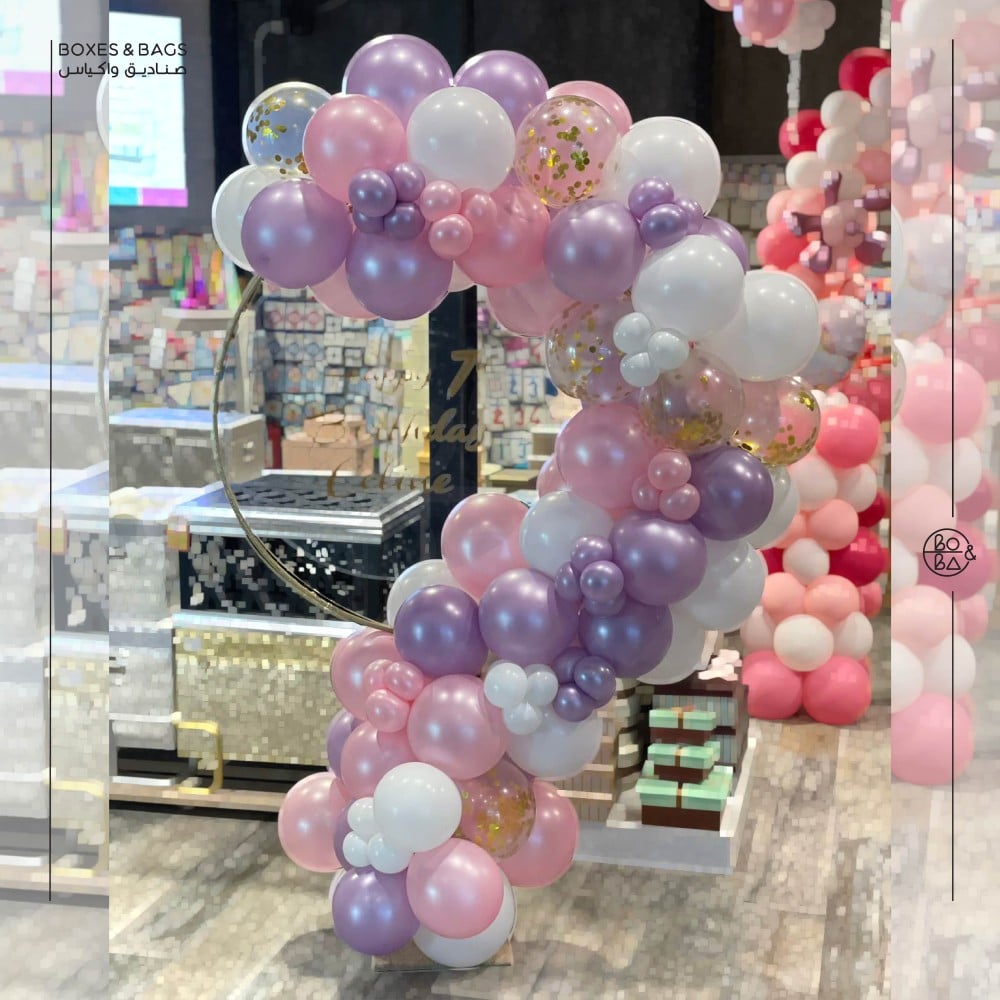 - النوع: استاند بلالين مدور قابل للفك والتركيب بسهولة، مما يجعله سهل النقل والاستخدام.